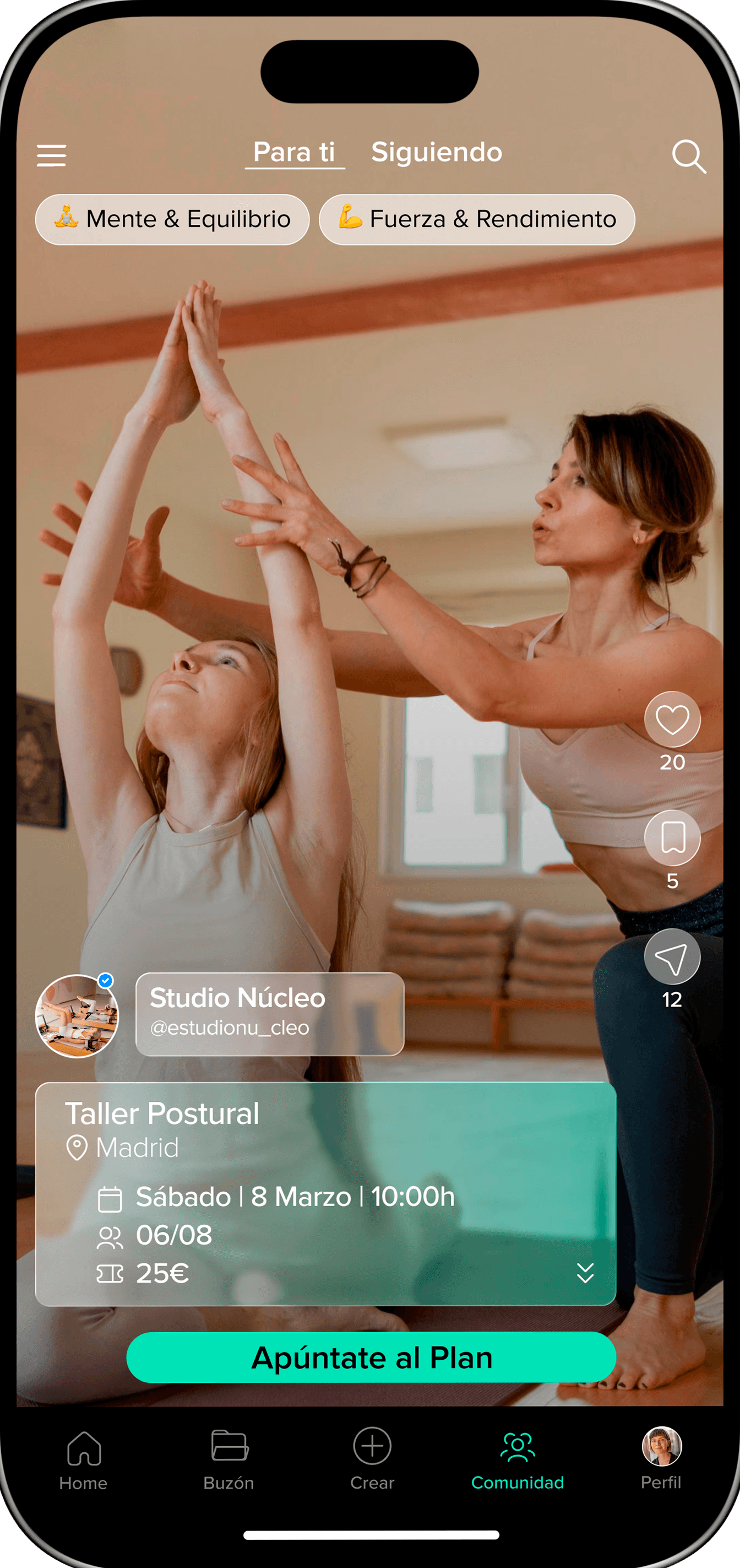 Publica tus clases, talleres, retiros y eventos, y aparece ante personas que buscan bienestar cerca de ti.